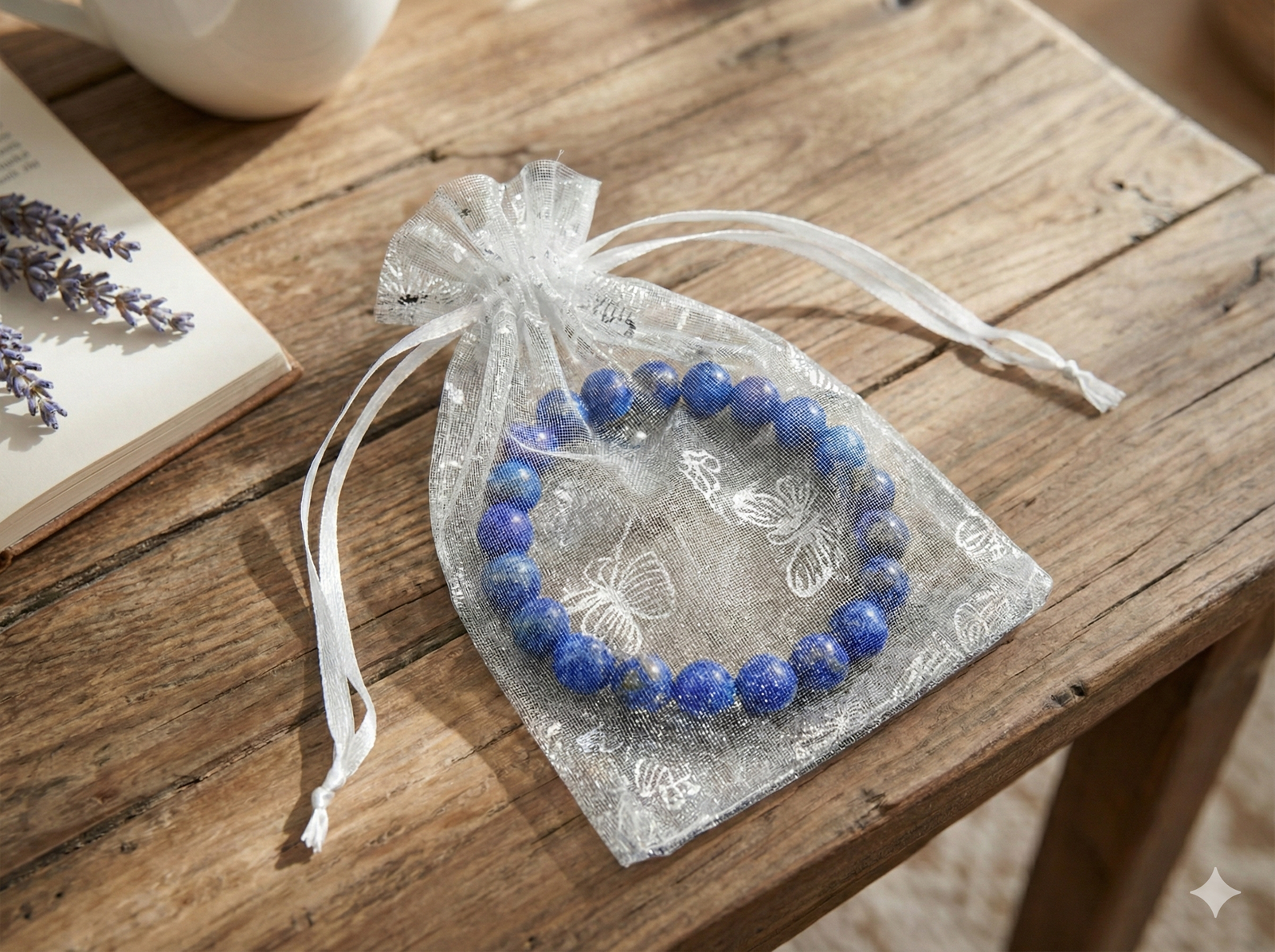 Sérénité et Apaisement : Ce bleu profond repousse les émotions négatives, le stress et les angoisses. Placé dans une chambre ou porté sur soi, il est réputé pour apaiser les esprits tourmentés et favoriser un sommeil réparateur.
